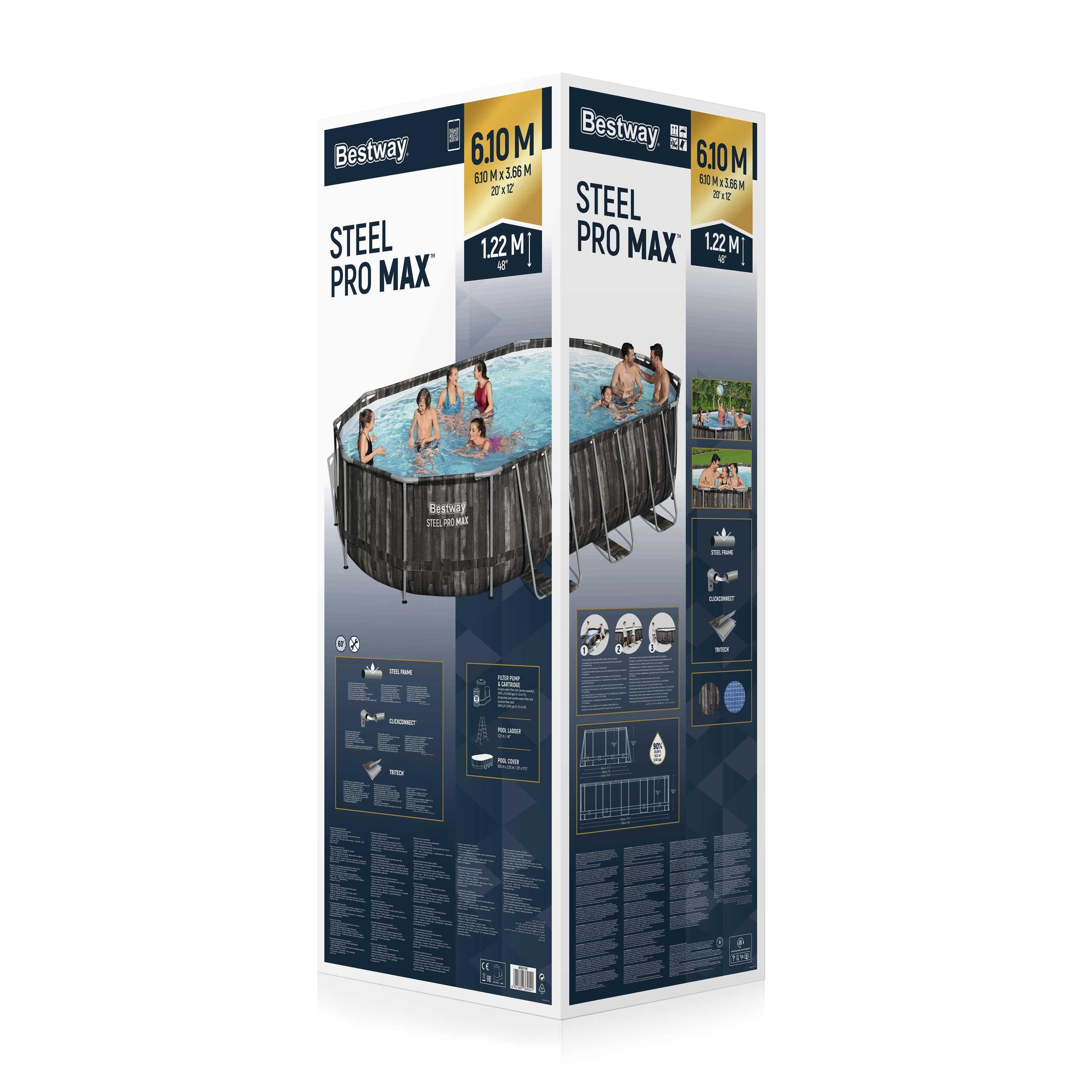 استخر پیشساخته بست وی مدل Bestway 5611R با طرح چوب بلوط (Power Steel Oval Pool)** آورده شده است — تمرکز بر دید فنی، کاربردی و ارزش خرید: