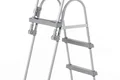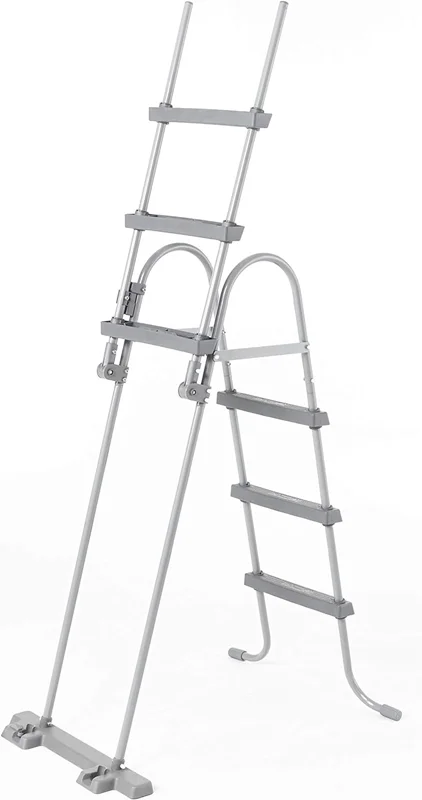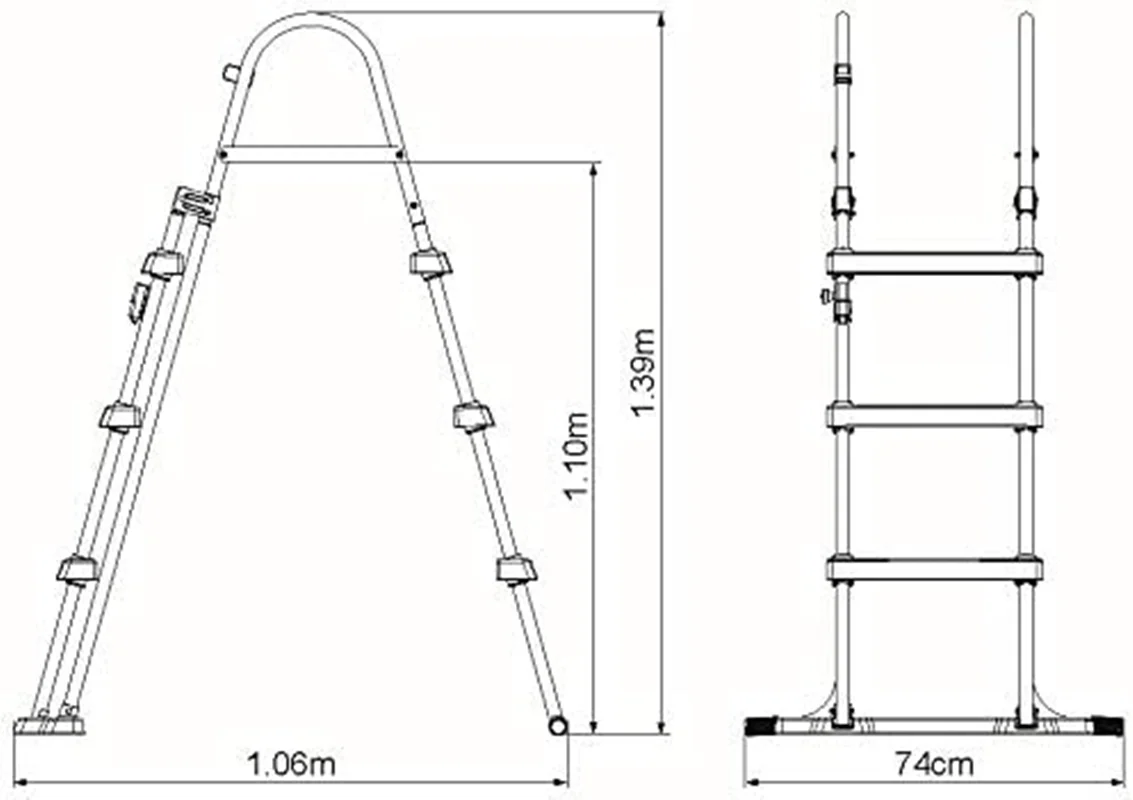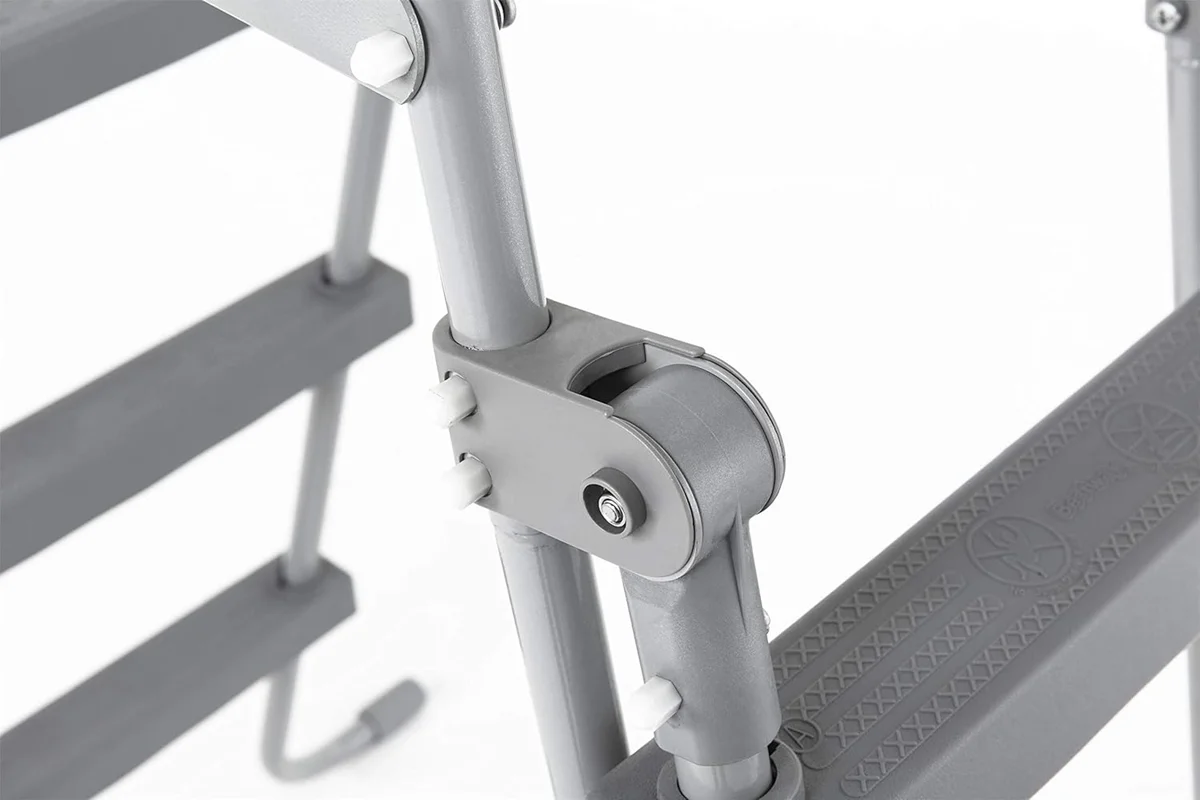 نردبان دو طرفه استخر بست وی از مقاوم ترین نردبان های ساخته شده برای استخر های پیش ساخته می باشد که طراحی آن به صورت دو طرفه بوده و شما می توانید هم برای ورود به استخر و هم برای خروج از استخر از آن استفاده کنید . استخر های پیش ساخته همانطور که می دانید بر روی زمین راه اندازی می شوند و برای همین نیاز است که برای ورود و خروج از آن ها ، از نردبان دو طرفه استخر استفاده کنید . مدل های مختلفی از این نردبان ها توسط شرکت های مختلف ساخته شده است ولیکن شما باید متناسب با نوع استخر پیش ساخته خود ، نردبان را نیز انتخاب کنید . به طور مثال نردبان دو طرفه فوق بیشتر برای استخر های پیش ساخته ای کاربرد دارد که نهایتا ارتفاع آن ها تا 107 سانتی متر باشد . این نردبان دارای ارتفاع کلی 139 سانتی متر می باشد که قسمت بالایی آن دستگیره نردبان است و اگر بخواهیم ارتفاع مفید نردبان را در نظر بگیریم ، 110 سانتی متر خواهد بود . برای همین است که اشاره شد از این نردبان برای استخر هایی با ارتفاع 107 سانتی متری استفاده شود .